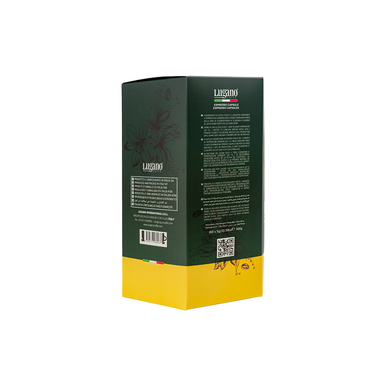 Lugano Caffè Classic Espresso Capsules have a balanced blend of high-quality Arabica and Robusta coffee beans. The classic capsule is distinguished by its attractive and strong aroma.