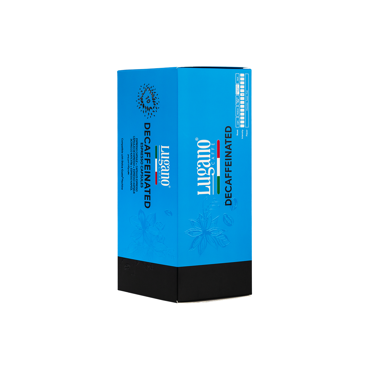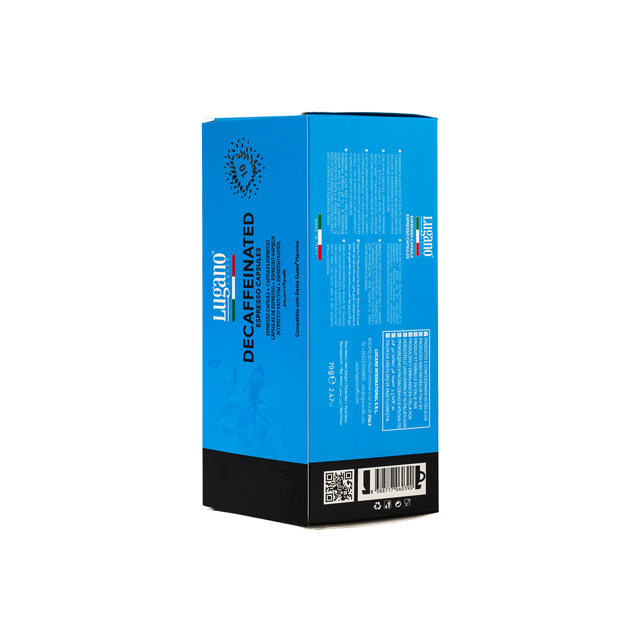 The amount of caffeine in Lugano Caffè Dolce Gusto Compatible Espresso Capsules doesn’t exceed 0.10%. Although most of the caffeine is extracted from the beans, you can still enjoy that rich coffee taste, thanks to our unique decaffeination methods.
