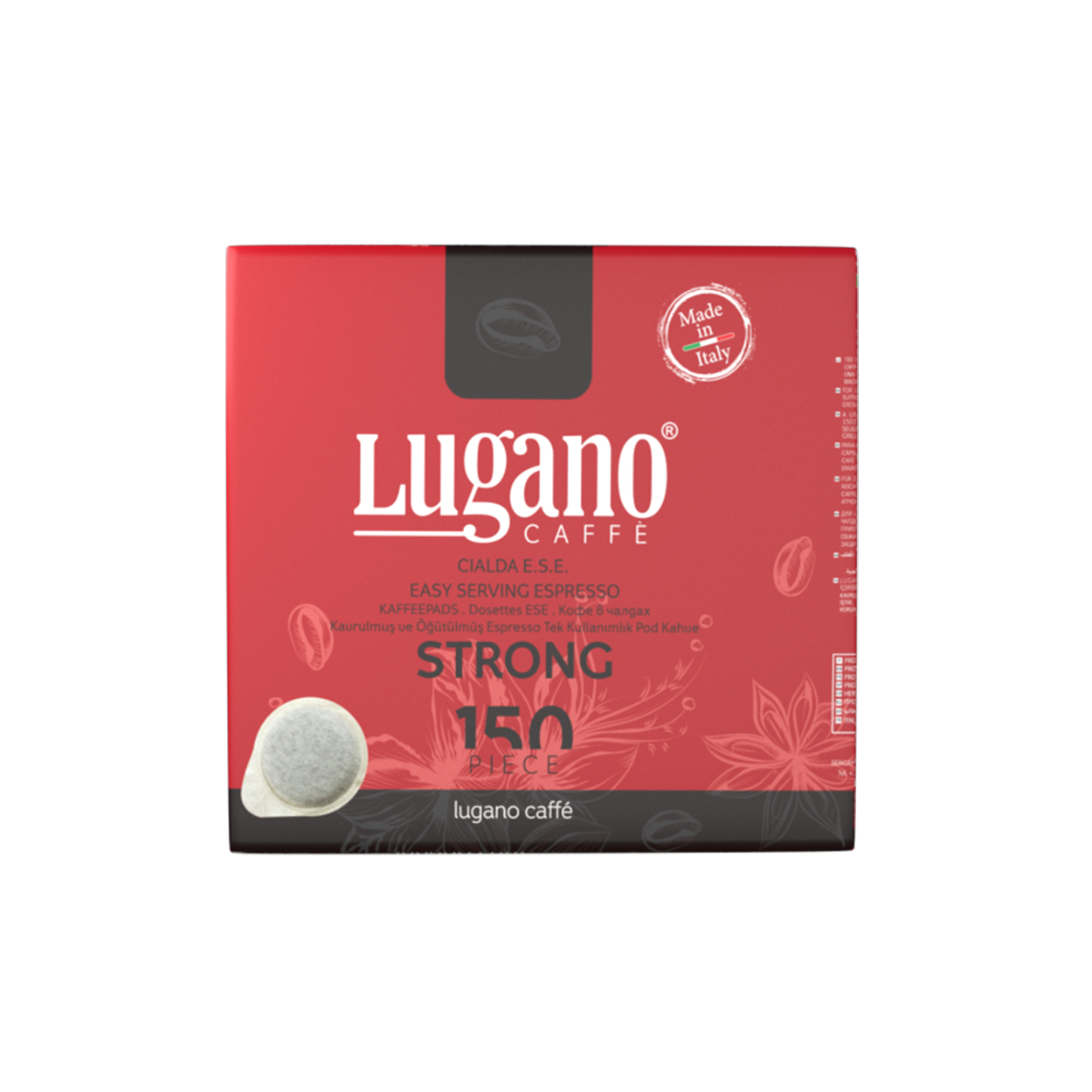Biodegradable Strong E.S.E. Espresso Pods are made from high-quality Robusta coffee varieties, boasting a full consistency and strong aroma. The Strong flavor of Lugano Caffè Espresso Pod is distinguished by its toasty flavor, woody, and spicy notes.